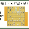 今回は後手雁木の出だしで、△43金右と組む指し方を検討したい…