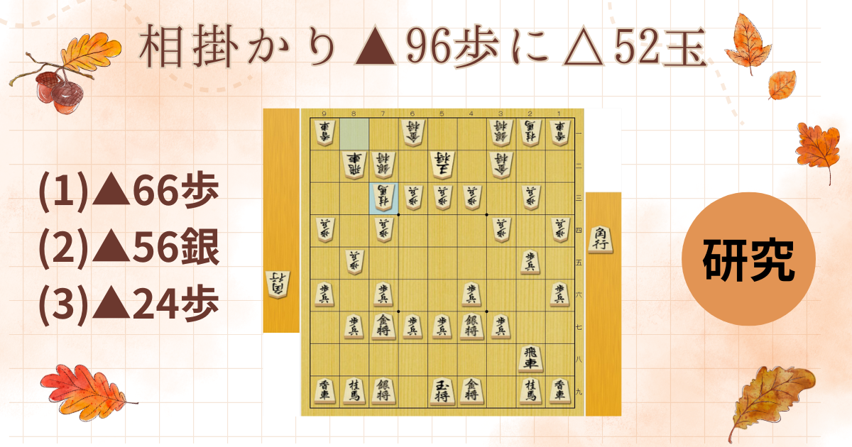 相掛かりで、▲96歩に△52玉と上がる将棋を検討したい。